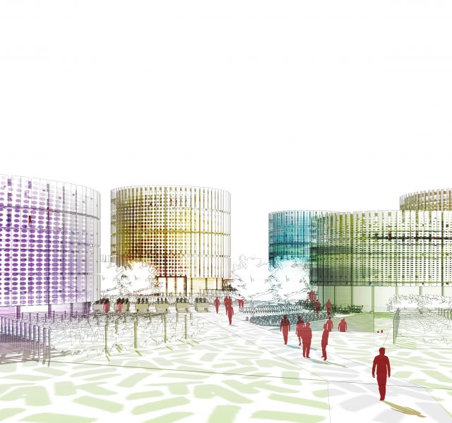 Le projet dans le quartier des Fiches-Nord, à Lausanne en Suisse, vise à créer un campus harmonieux en intégrant quatre équipements : un Centre de Vie Enfantine, l'APEMS, un collège et une salle de gymnastique.