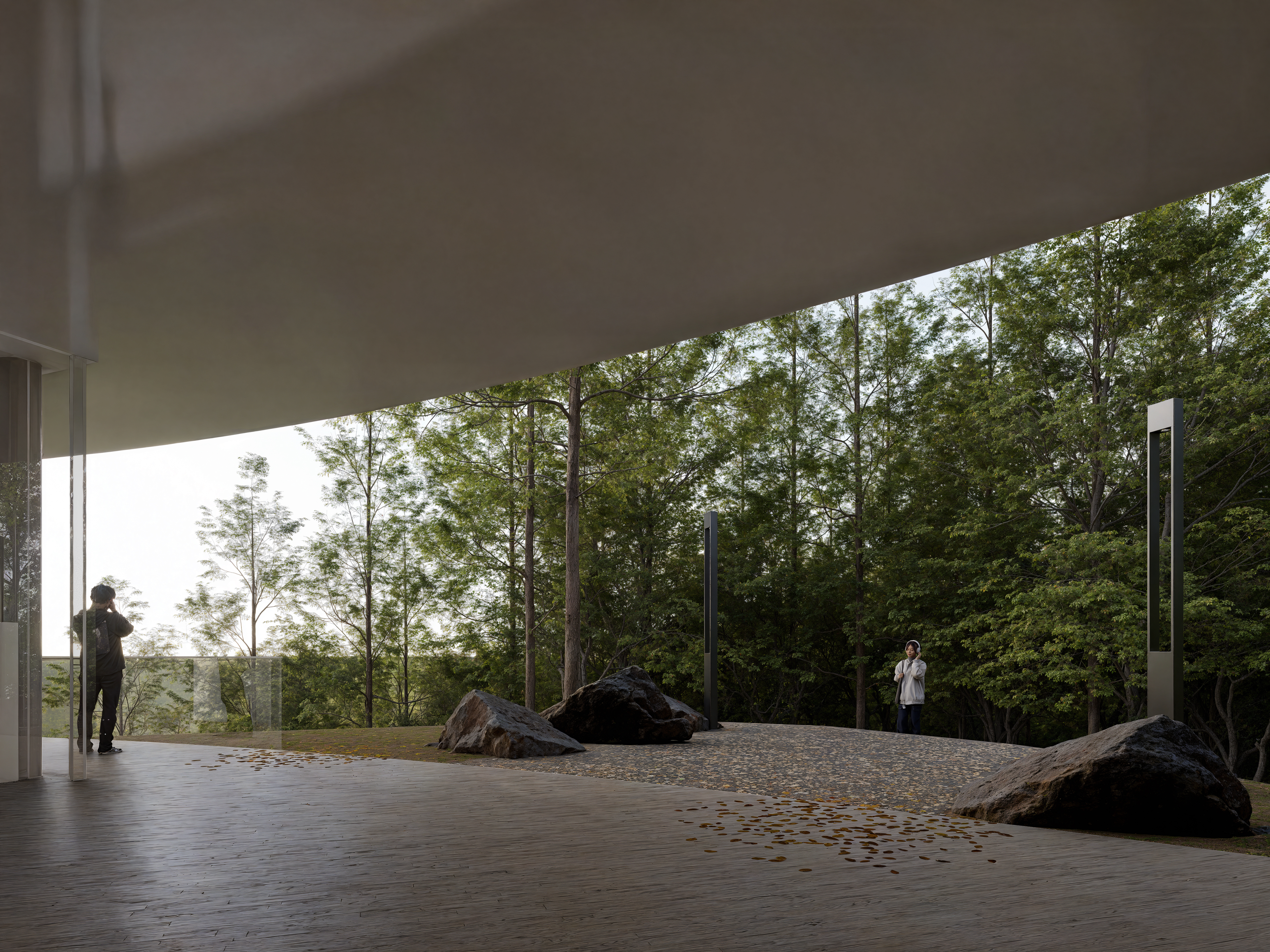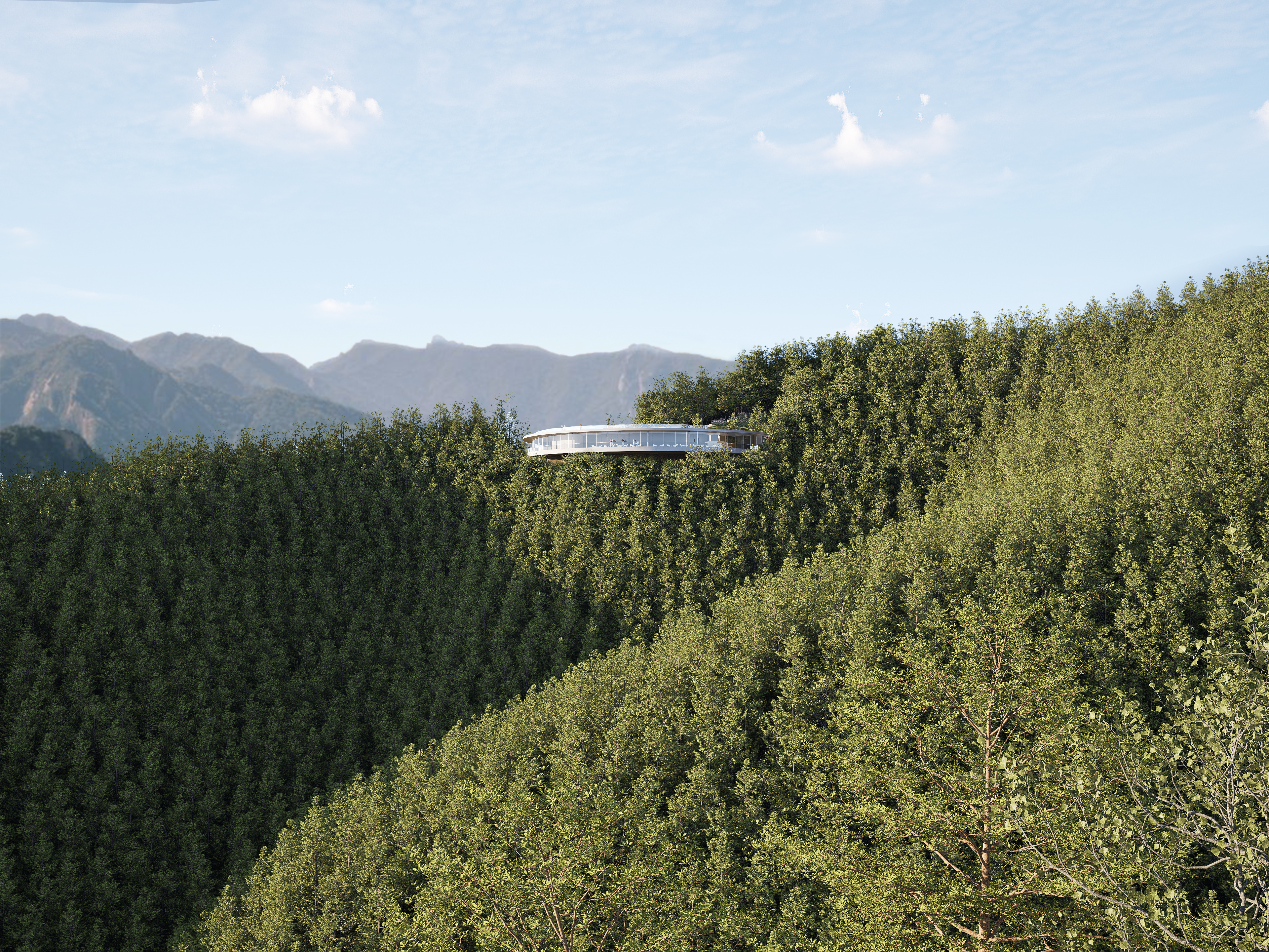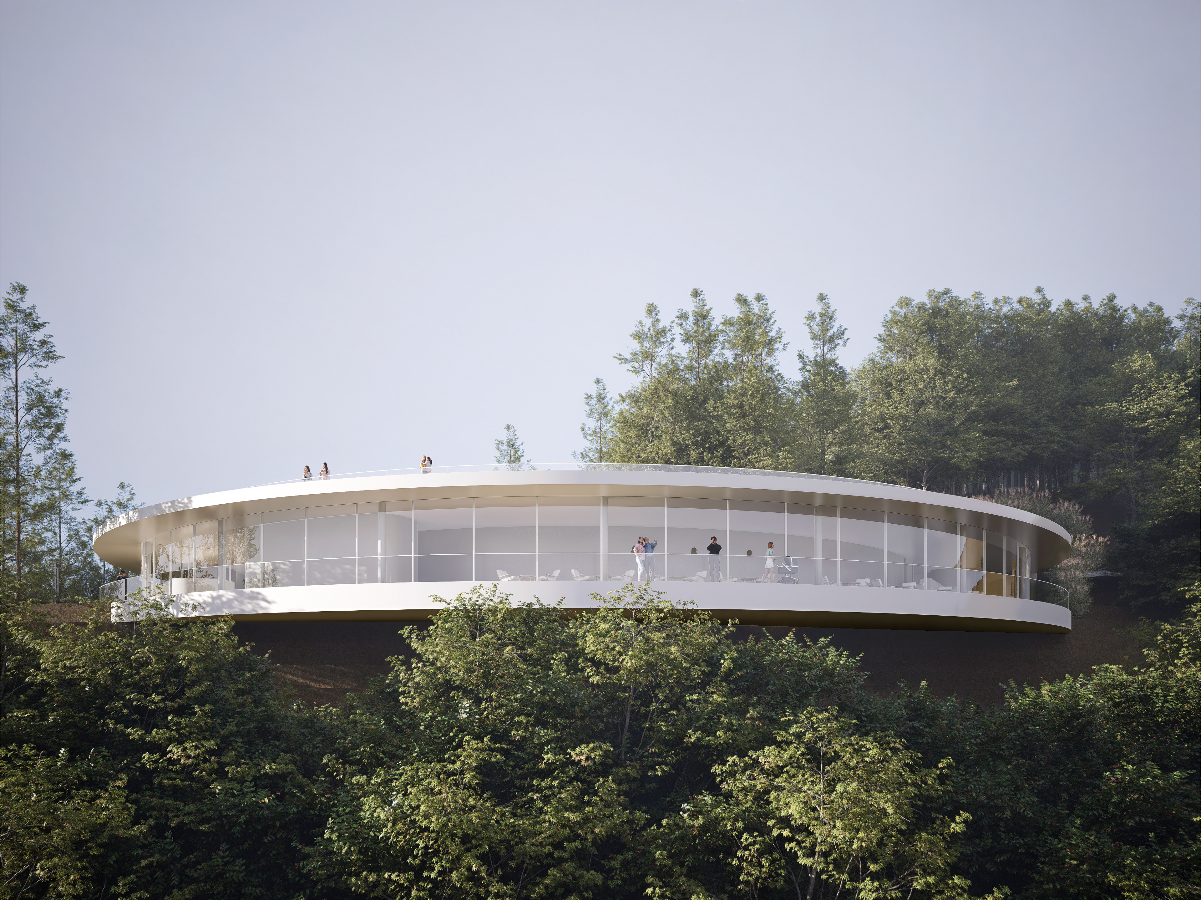 Le projet propose une forme qui préserve la silhouette naturelle du mont Biryeong, en tenant compte de l'harmonie entre la nature et l'architecture. La plateforme circulaire et horizontale s'intègre naturellement au paysage et offre une vue panoramique à 360 degrés sur Hoeryongpo, le complexe culturel Samgang et Mungyeong. L'impact au sol est réduit afin de minimiser les perturbations environnementales, et la disposition privilégie une interaction fluide entre l'architecture et la nature.