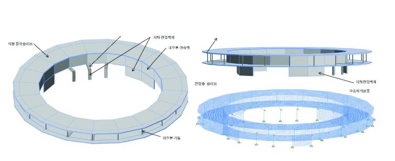 L'observatoire Dolumgil est constitué de planchers et toitures horizontaux, de colonnes extérieures et de murs intérieurs continus, formant une structure circulaire parfaite. La hauteur sous plafond est d'environ 4 mètres, certaines parties étant directement soutenues par le sol, tandis que d'autres sont suspendues à environ 7 mètres. Ce design vise à garantir la stabilité structurelle tout en limitant l'impact environnemental.