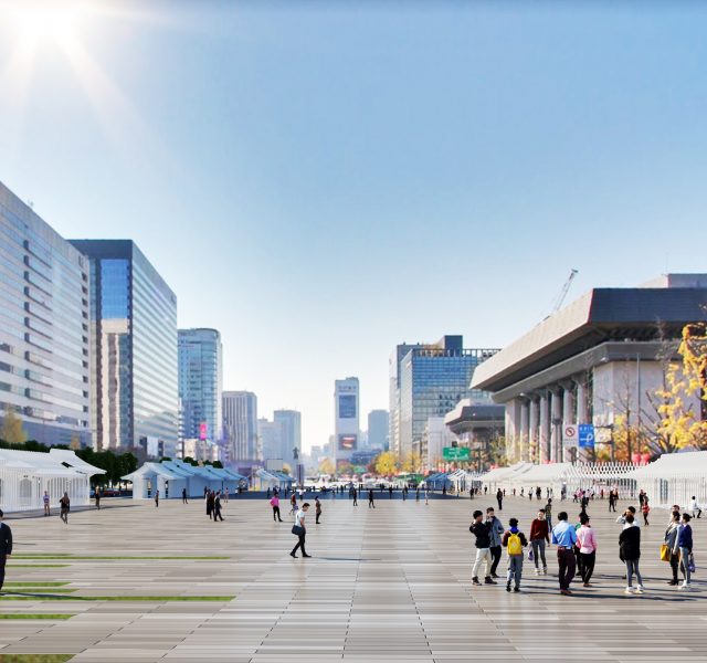 L'ancien Dongsoong Art Center, situé dans le quartier Jongno-gu à Séoul, est implanté au centre d'une zone dense en infrastructures culturelles et salles de spectacle, offrant une accessibilité exceptionnelle et un fort potentiel pour des échanges actifs avec son environnement. En particulier, les environs sont très fréquentés par les piétons, et l'accès au bâtiment se fait principalement à pied, ce qui constitue un atout pour que les visiteurs puissent y accéder facilement. Construit en 1989, le bâtiment a fait l'objet d'une rénovation partielle en 2018 et demeure tel qu'il est aujourd'hui. Actuellement, la scène du théâtre, situé au sous-sol, occupe l'espace d'entrée au rez-de-chaussée, tandis que le reste de la zone de RDC est principalement utilisé comme parking. Le projet proposé vise à transformer cette cour non seulement en un espace accessible à tous à l’intérieur du site, mais aussi à l'échelle du quartier de Daehangno, en un espace emblématique qui représenterait un véritable "village du spectacle".
