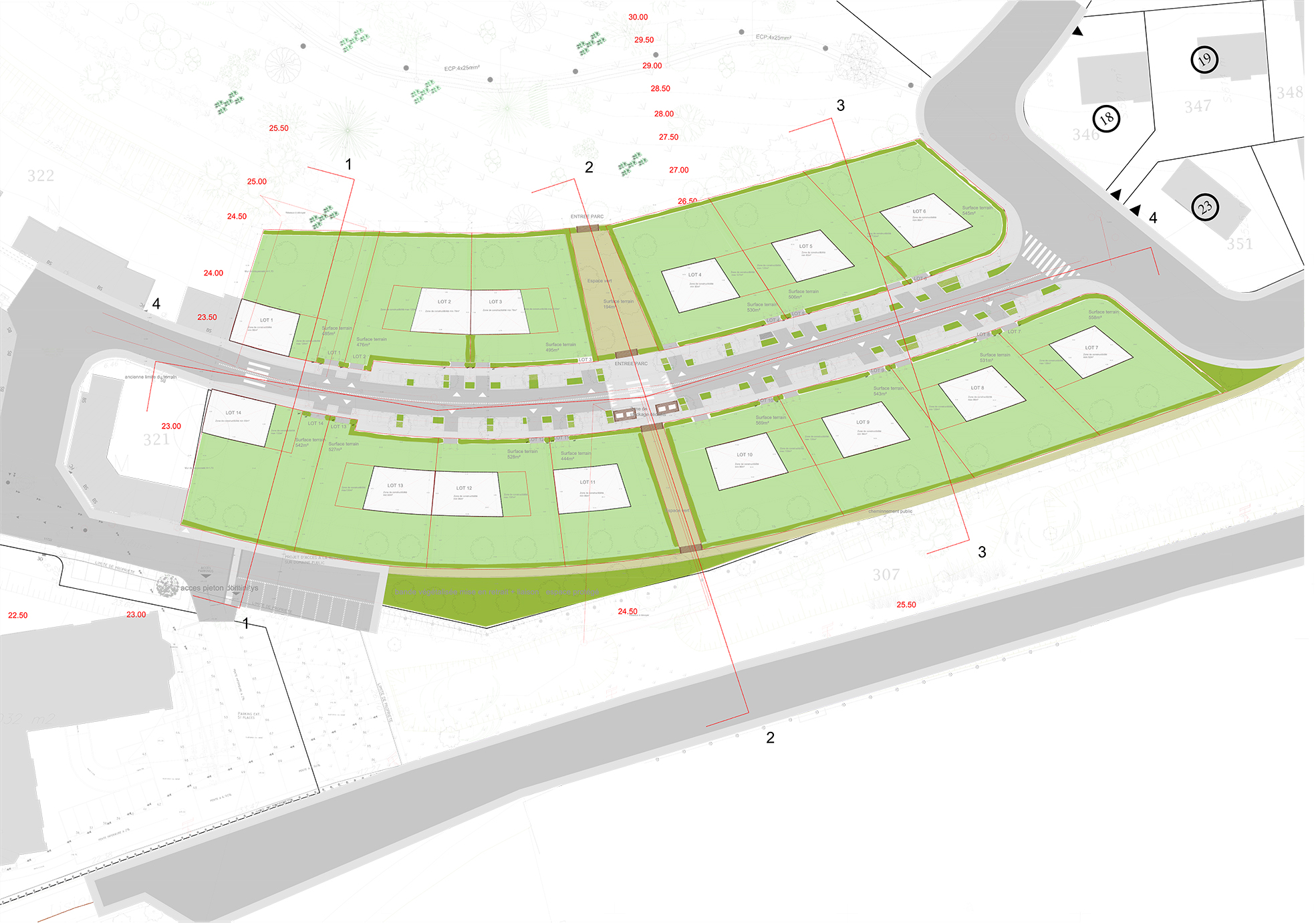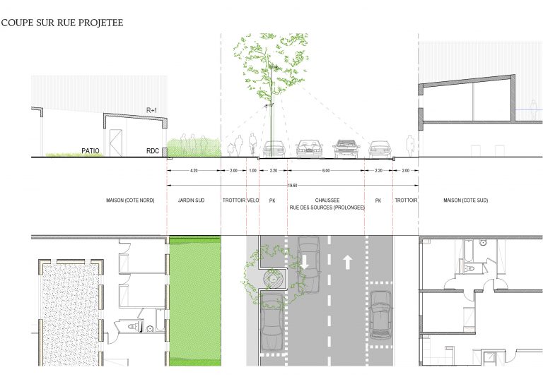 Ce projet crée une liaison harmonieuse entre les maisons individuelles de la rue du Verger et les maisons mitoyennes de la rue des Senteurs. Cette connexion assure une transition en douceur entre les bâtiments continus de la zone UA et les nouveaux quartiers résidentiels individuels existants. Le site sera divisé en parcelles pour la création de nouveaux lots, chaque parcelle accueillant une maison individuelle. Le projet prévoit ainsi l’aménagement de 14 parcelles de 7800 m² destinées à des maisons individuelles, avec des dimensions de 20 m x 22 m chacune.