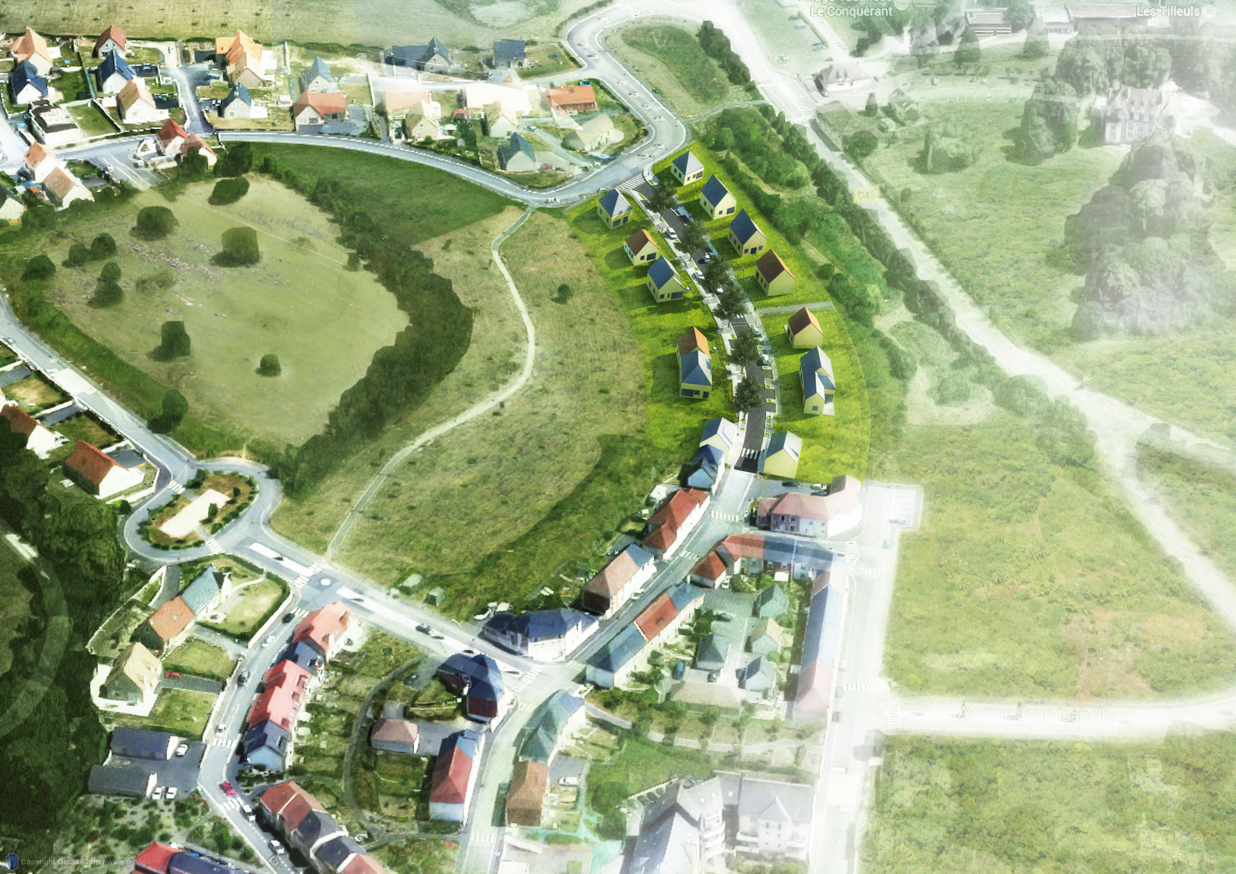 À Dives-sur-Mer, le projet du quartier SARLABOT propose 14 parcelles pour maisons individuelles, intégrées dans une trame urbaine mixte. Espaces verts et continuité urbaine renforcent connectivité, durabilité et cohérence architecturale.