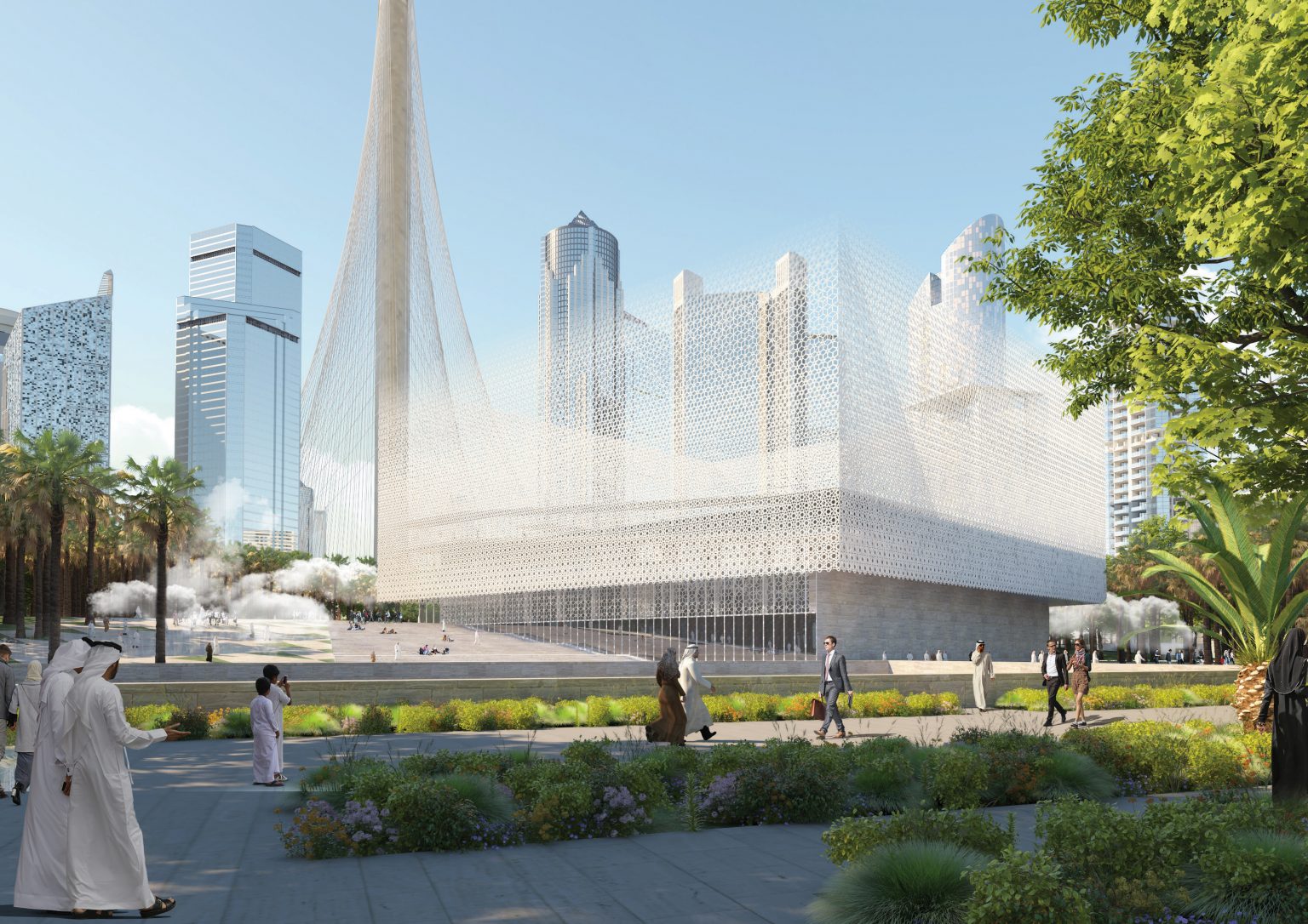 Le projet s’inscrit dans un axe urbain majeur qui relie la tour emblématique de Creek Harbour au parc Sanctuary, surplombant ainsi le futur développement urbain le plus ambitieux de Dubaï. En embrassant l'intégralité du parc linéaire, ce projet se manifeste comme une entité pure : une « MOSQUÉE ICONIQUE », subtilement fusionnée avec le paysage urbain environnant.