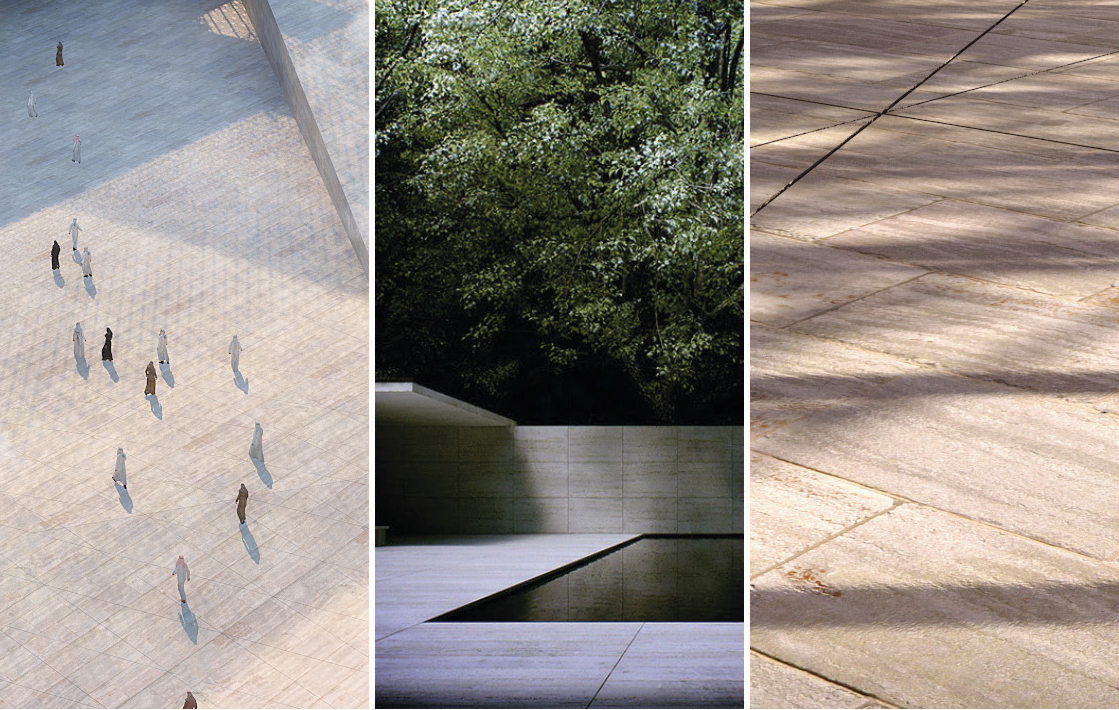 Le paysage se divise en deux catégories : un paysage doux, embelli de brumisateurs urbains, de fontaines peu profondes et d'arbres ombragés, qui contraste avec un paysage minéral intégrant des parements en pierre. Cette même pierre s’étend de l’intérieur à l’extérieur, garantissant une continuité visuelle et matérielle des espaces.adaptable pour différentes configurations de résidents. Les unités sont agencées en forme linéaire, en L, ou autour d'une cour intérieure, permettant des accès via la cour commune et ouvrant les espaces principaux sur les jardins privés pour maximiser la lumière naturelle et les perspectives.
