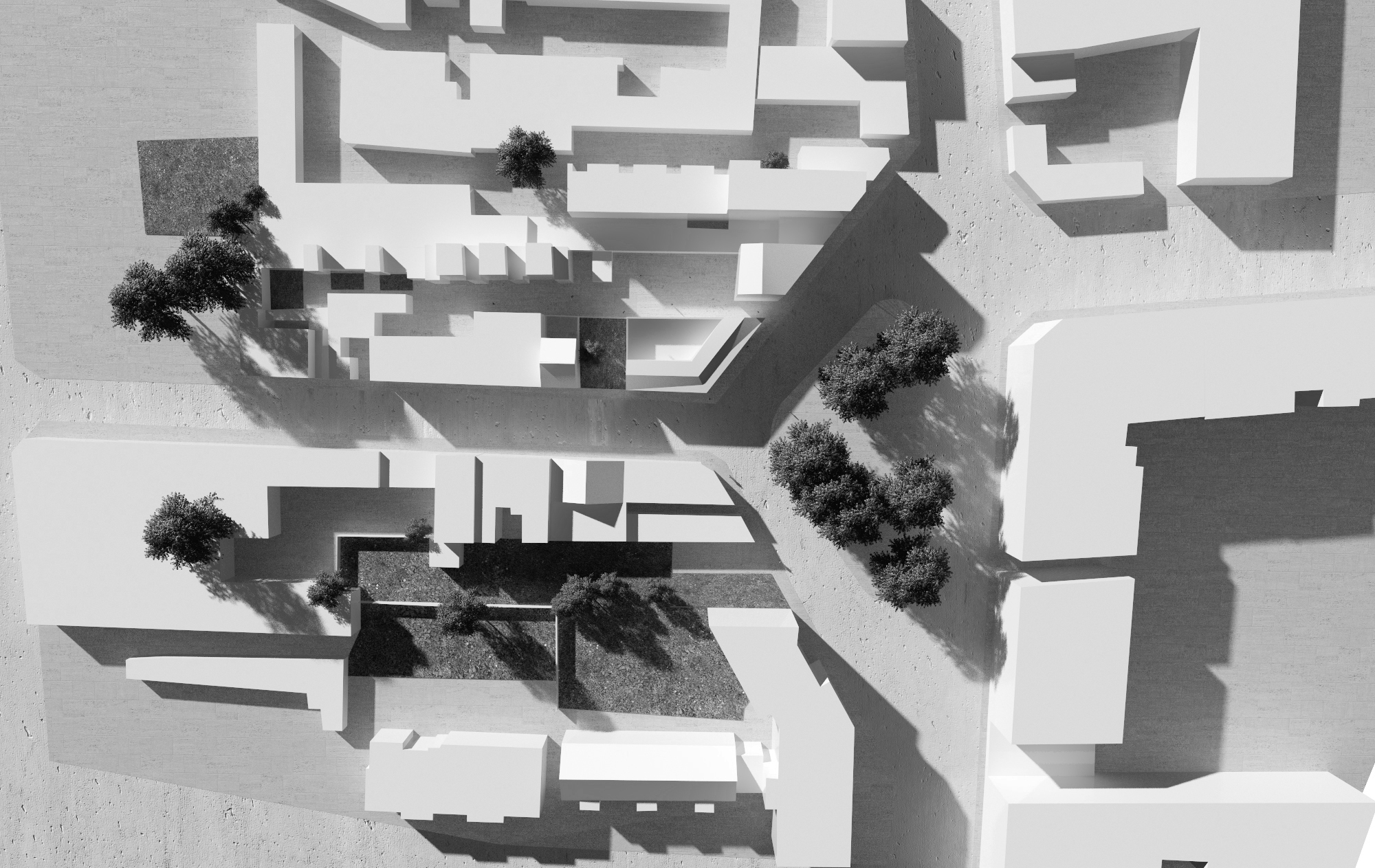La terrasse supérieure offre un véritable espace commun, incluant un potager et un verger gérés de manière autonome par les résidents. En plus de ces jardins partagés, des zones de détente extérieures sont aménagées, invitant les habitants à se retrouver dans un cadre naturel. Tous ces espaces, proposés dans le cadre du projet, visent à encourager un mode de vie collectif tout en minimisant l'impact environnemental et en intégrant harmonieusement le projet dans le paysage environnant.