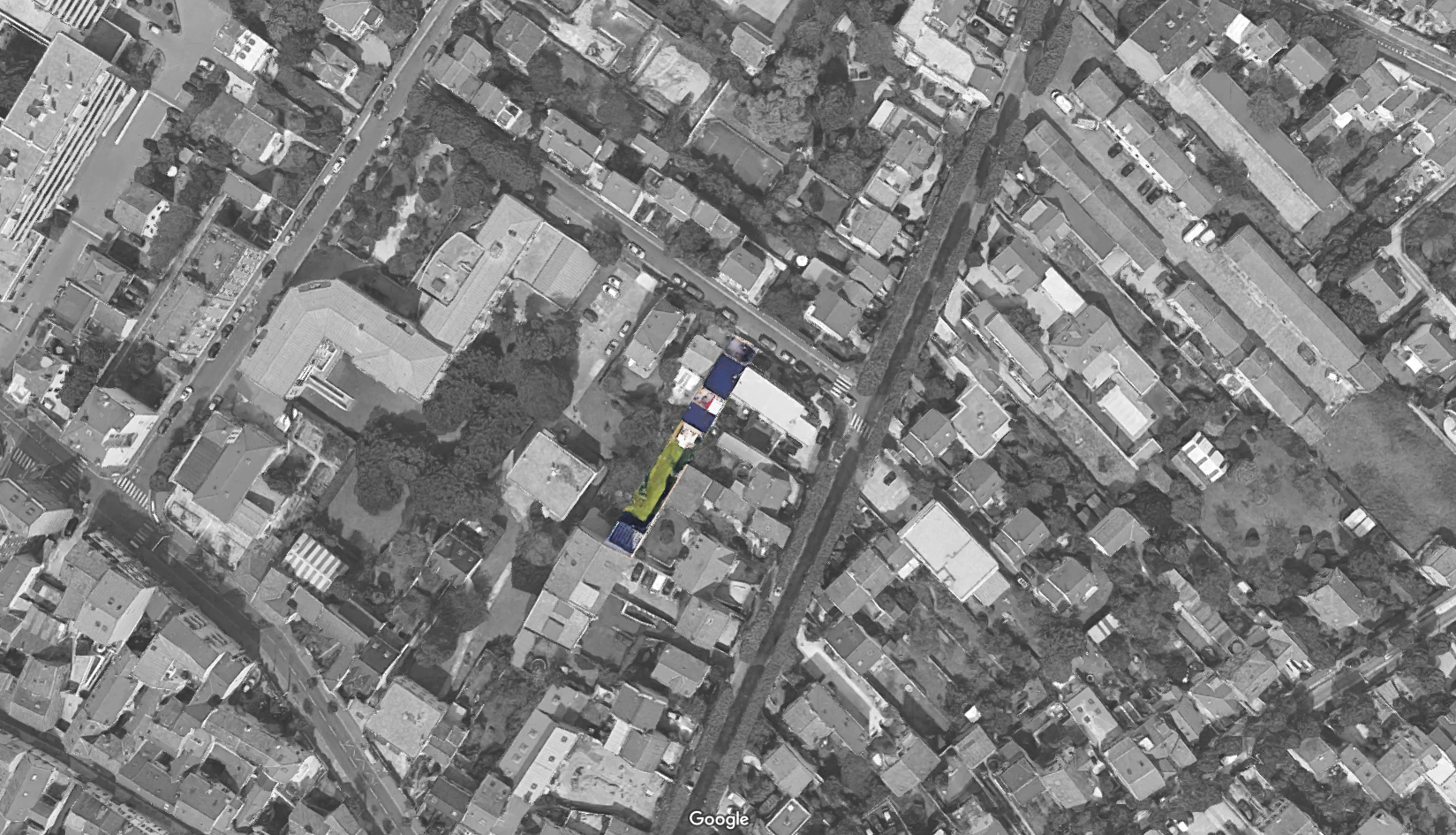 La ville de Nanterre, située en banlieue parisienne, présente une forme urbaine qui mêle un ancien quartier historique et une zone moderne nouvellement aménagée. La parcelle se trouve dans une zone résidentielle composée de petites divisions, avec des parcelles très longues et étroites qui s’étendent parallèlement aux routes des deux côtés. Compte tenu de ces caractéristiques — une parcelle profonde et étroite avec une rue étroite à l'avant —, nous avons opté pour une construction en bois. Ce choix structurel facilite le transport de matériaux et d'équipements de construction dans cet espace confiné. La parcelle, d’une largeur de 7 mètres pour une longueur de 58 mètres, est limitée en largeur mais bénéficie d'une orientation sud-ouest, idéale pour un bon apport de lumière naturelle.