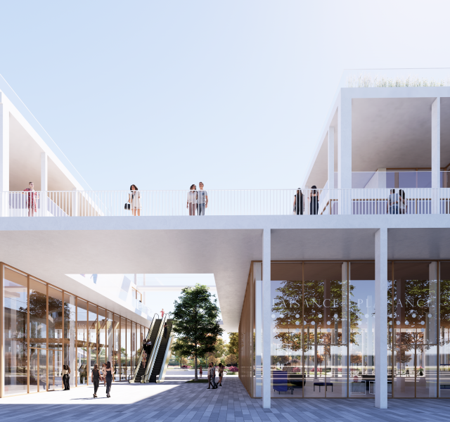 La proposition consiste à insérer l'élément architectural traditionnel du "Haengnang" (galerie ou cloître) réinterprété de manière contemporaine, pour créer une échelle urbaine intermédiaire entre les gratte-ciel existants et l'espace vaste du boulevard.